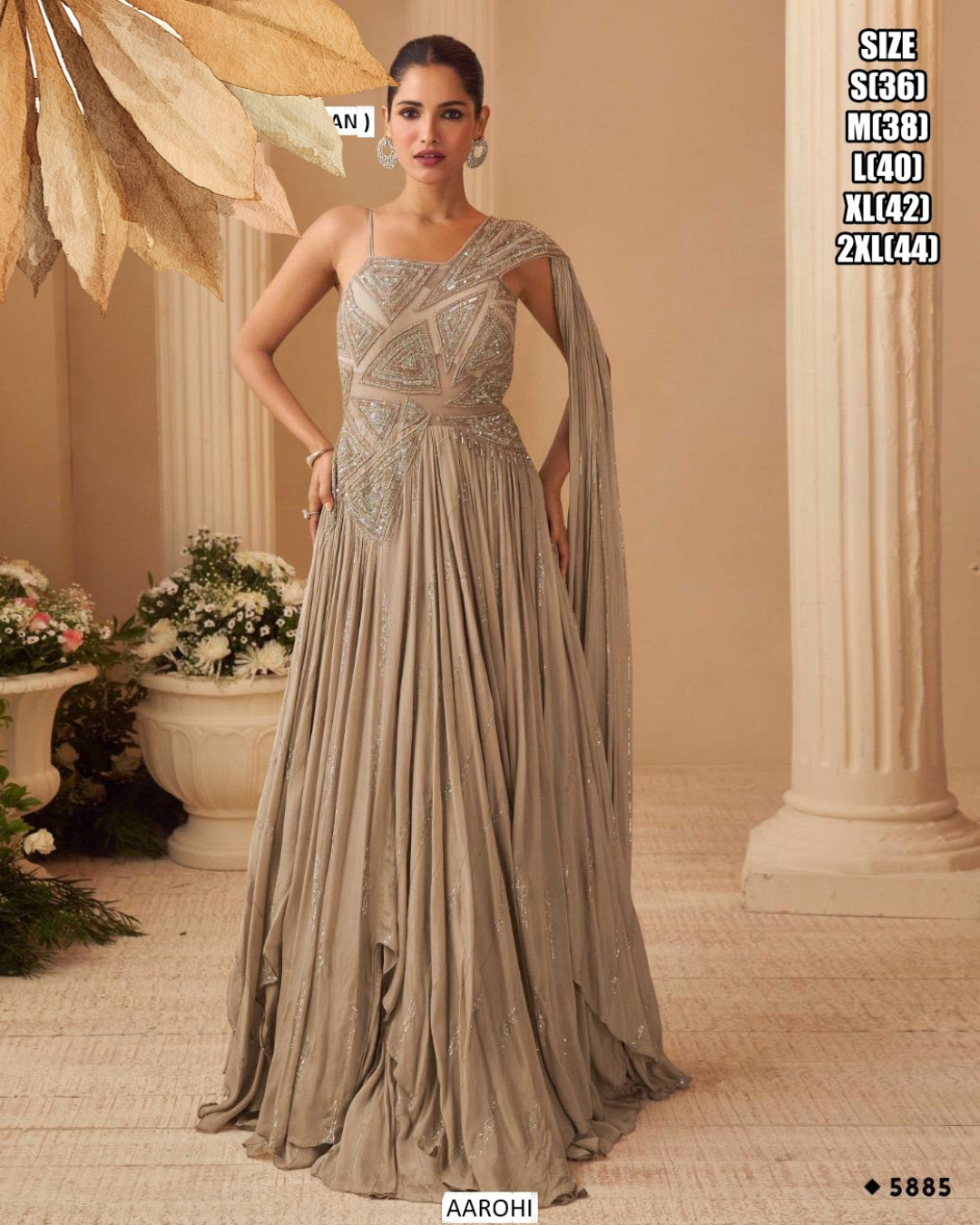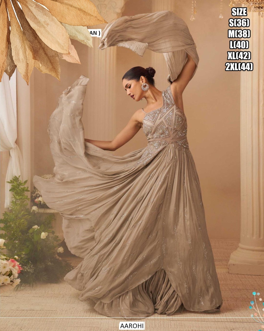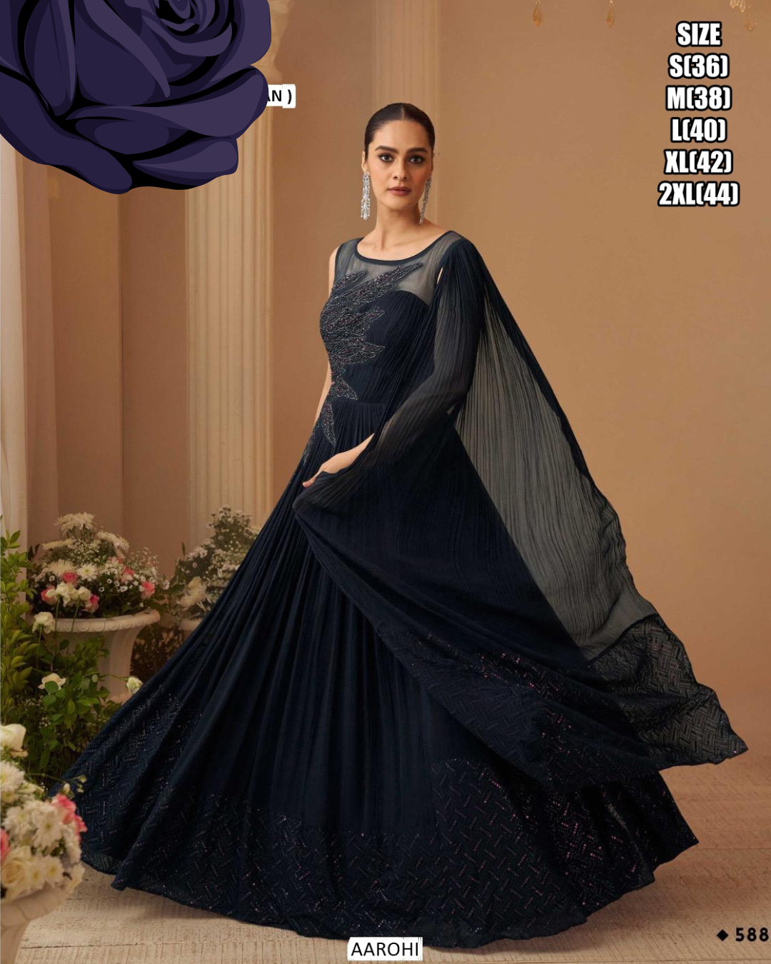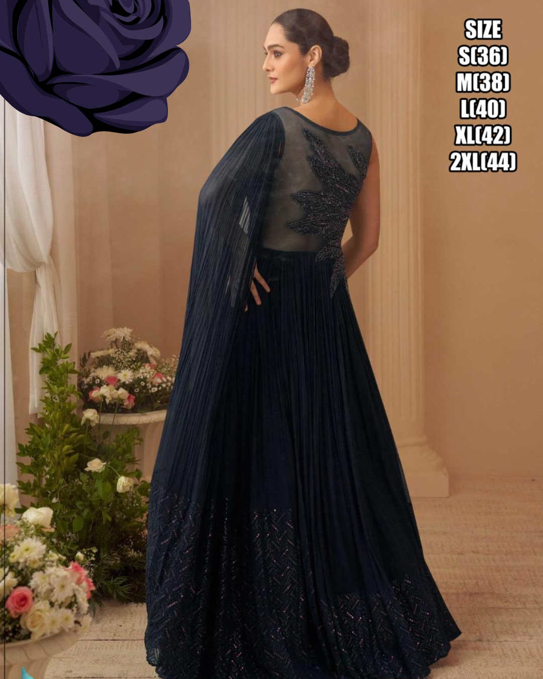 This elegant 3 pc suit is crafted in premium real Chinon silk, featuring a front and back hand-work embroidered gown enhanced with cancan for added volume. Designed for weddings and festive occasions, this ensemble offers regal elegance, luxurious fabric, and stunning craftsmanship.
