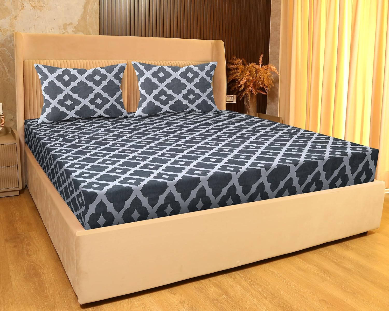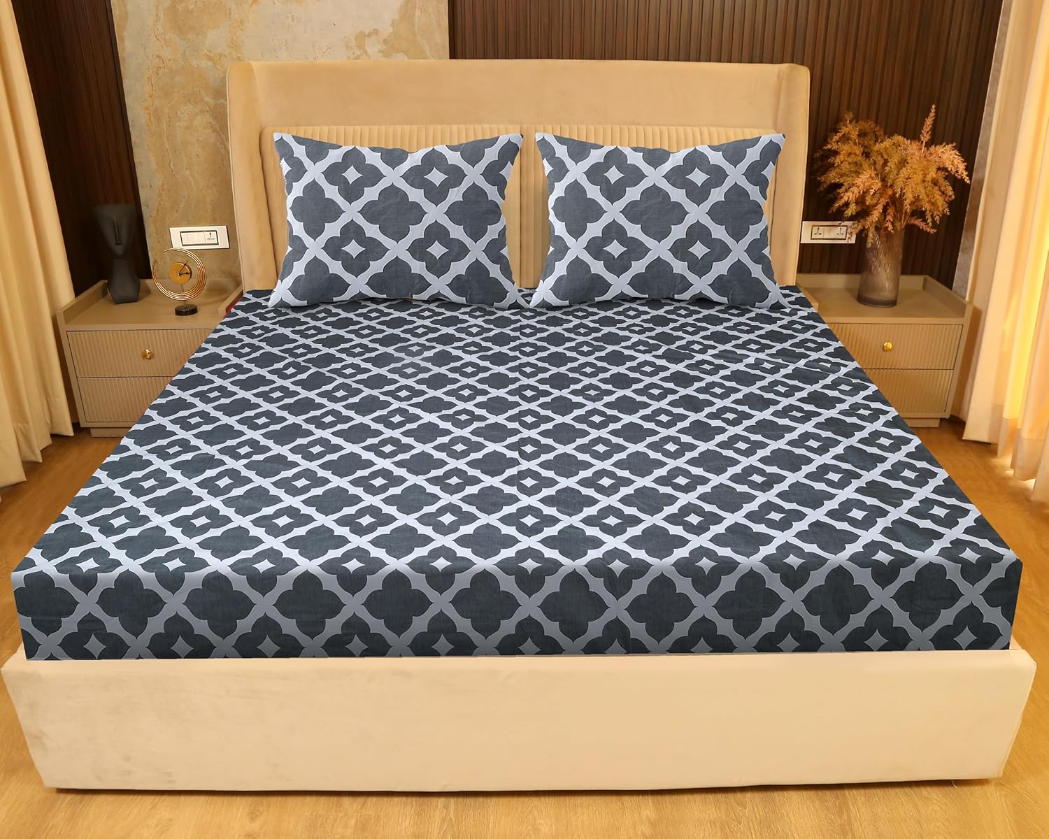 SANFORDZ  High-5 King Size BEDSHEET1 King Size Bed sheet + 2 Pillow Covers140 GSM Fabric Spun Glace Cotton Fabric Sateen Cotton Fabric, (SZ 1351Black)