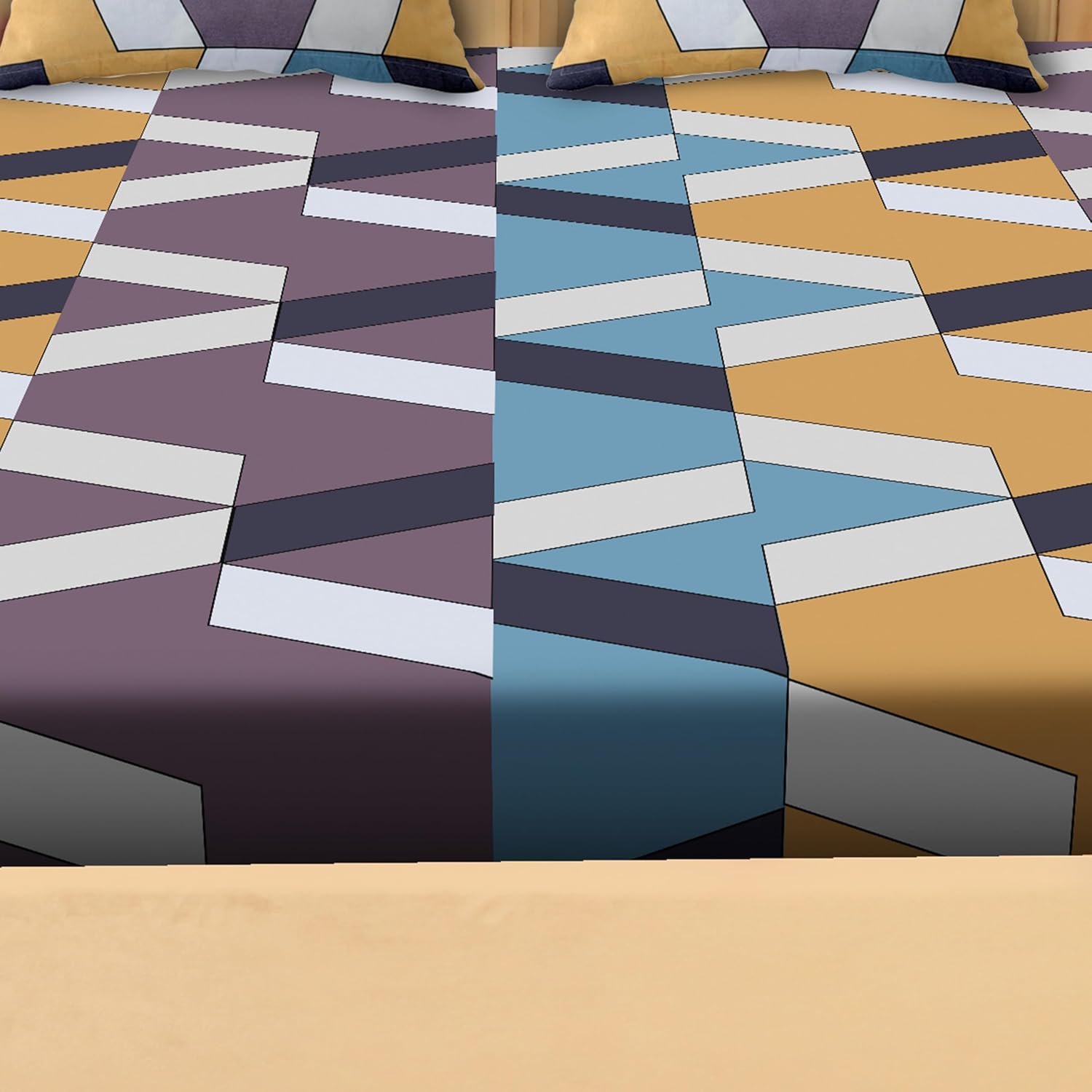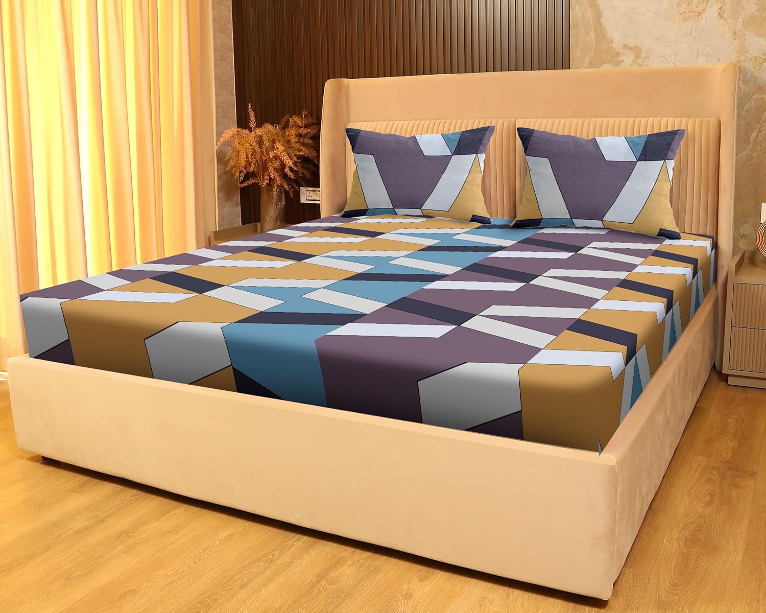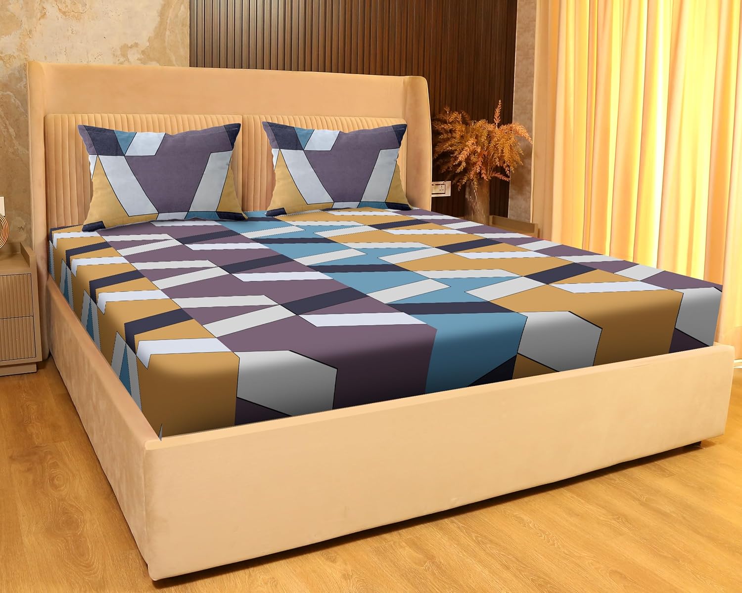 Sanfordz High-5 King Size BEDSHEET1 King Size Bed sheet + 2 Pillow Covers140 GSM Fabric Spun Glace Cotton Fabric Sateen Cotton Fabric (SZ 1357 YELLOW/PURPLE)