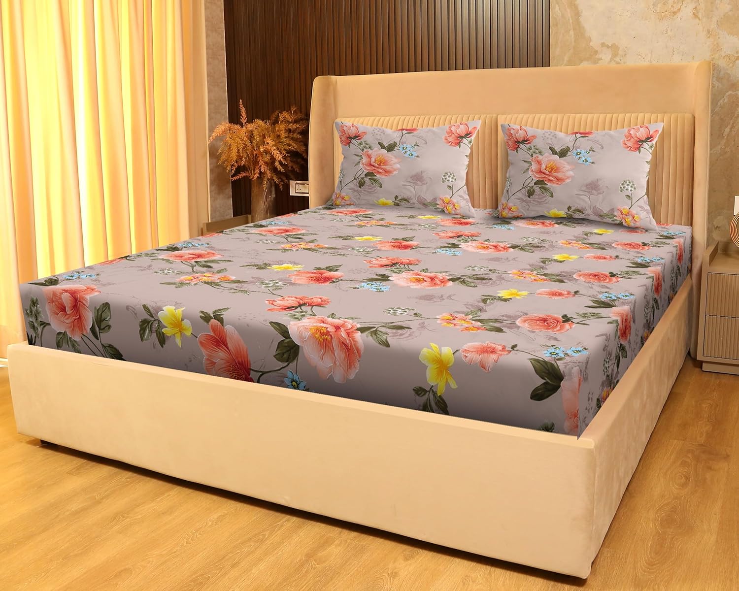 SANFORDZ Digital Art Queen Size BEDSHEET1 Queen Size Bed sheet + 2 Pillow Covers140 GSM Glace Cotton Fabric Sateen Cotton