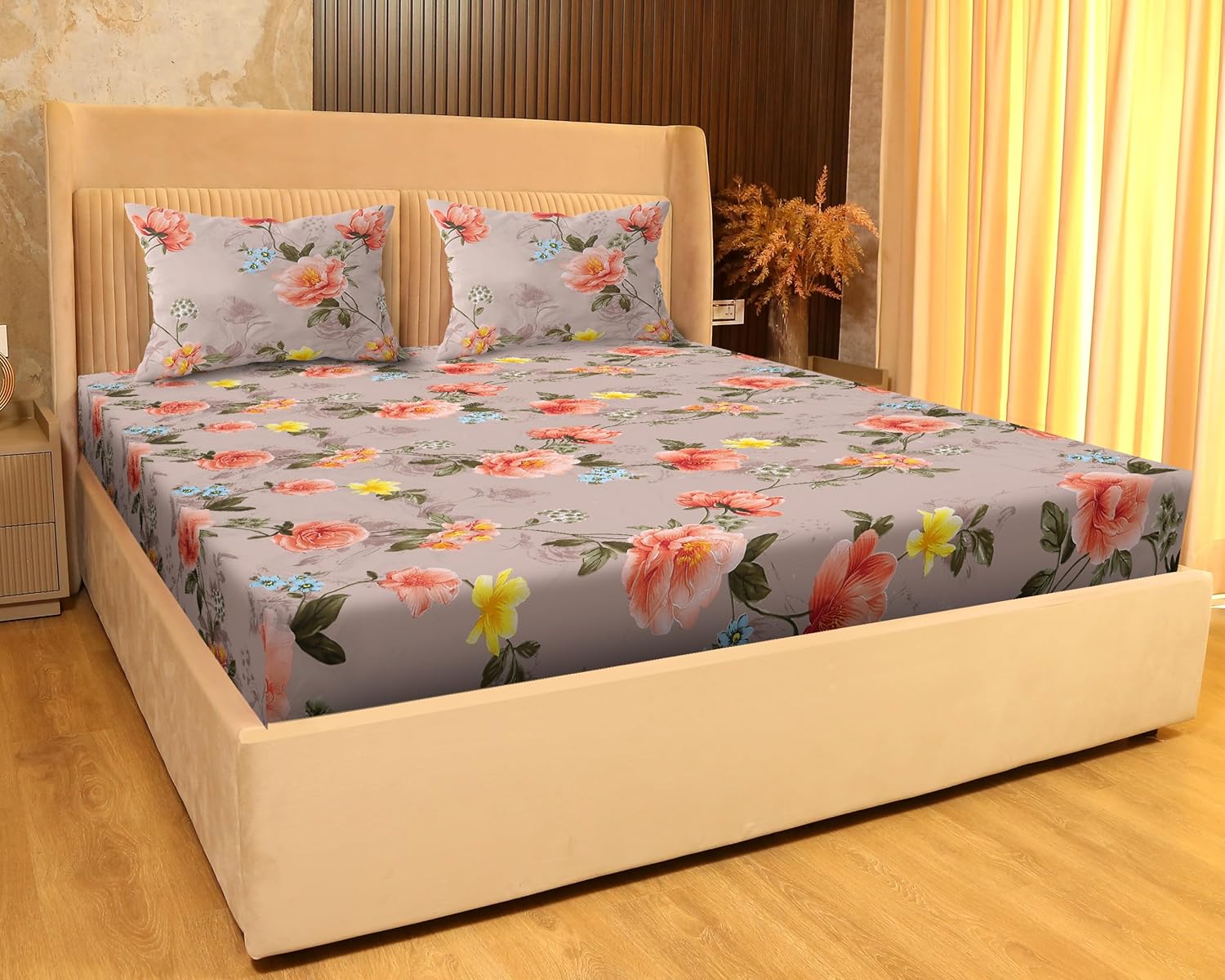 SANFORDZ Queen size bed sheet (SZ-1452-Peach-pink-floral)230*250 Cm