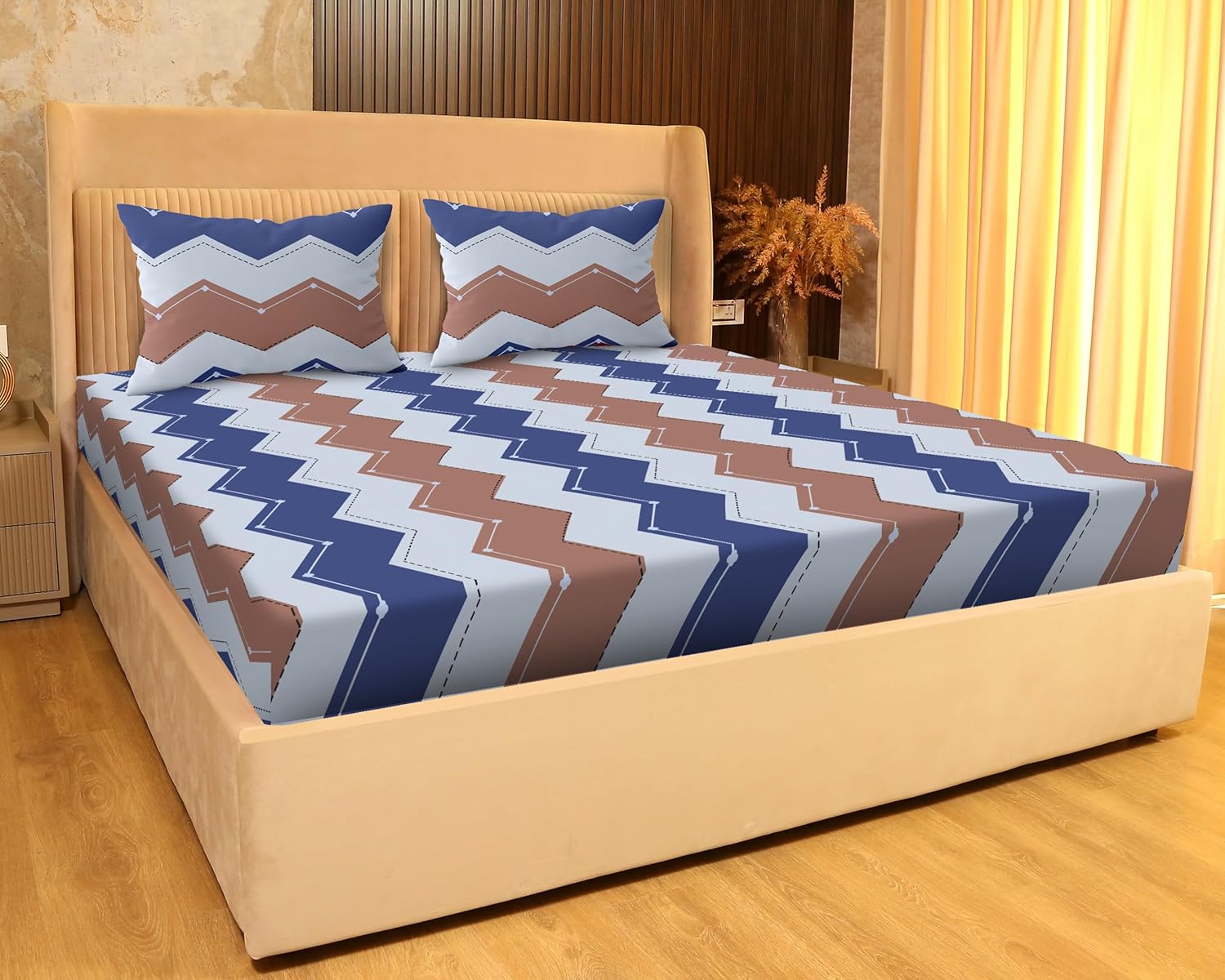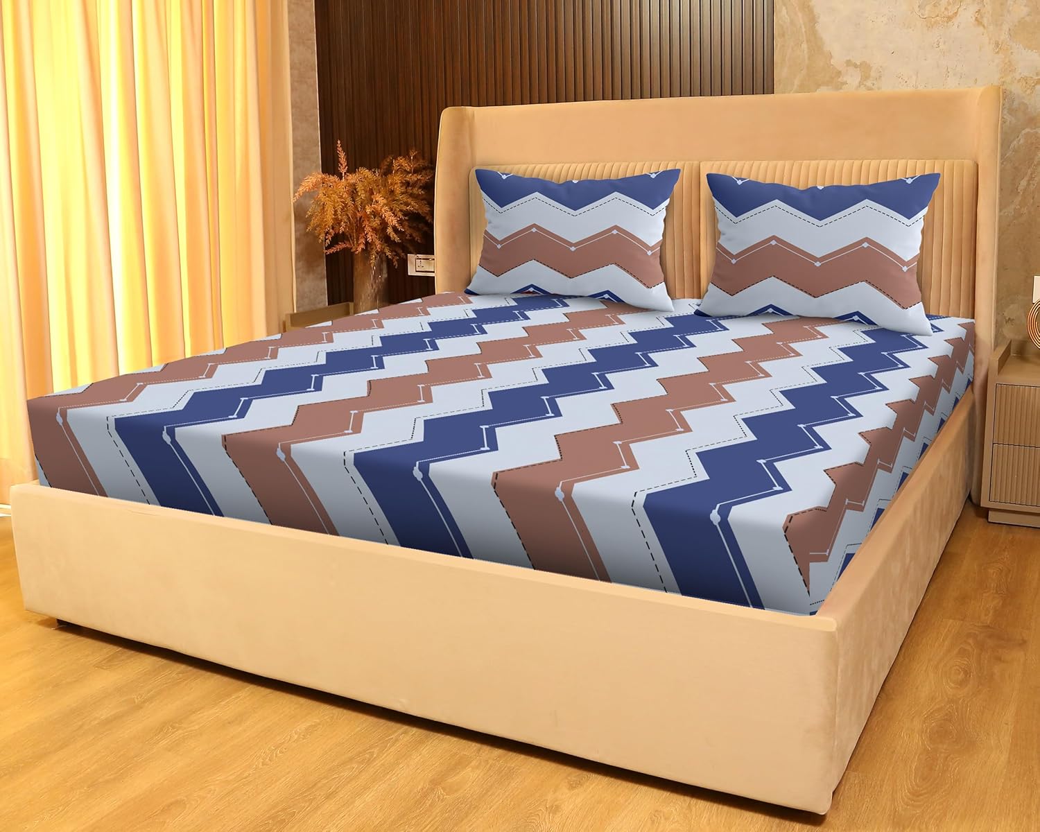 SANFORDZ Queen size bed sheet (SZ-1456-ZigZag)230*250 Cm