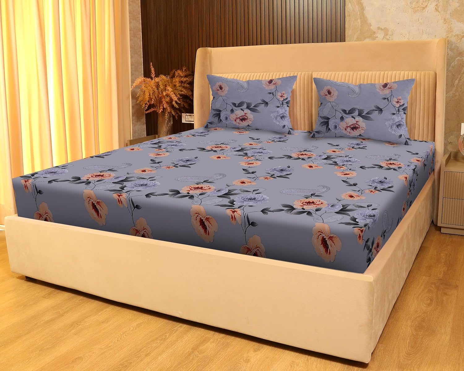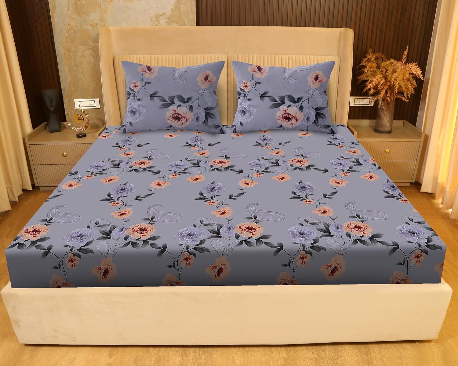 SANFORDZ Queen size bed sheet (SZ-1458-Grey-Pink-Floral)230*250 Cm