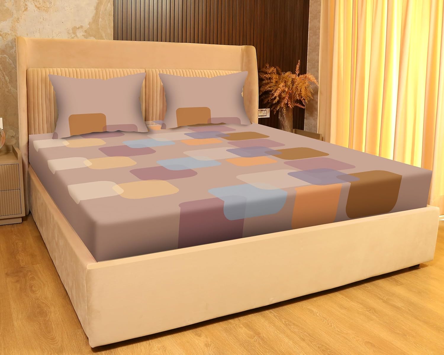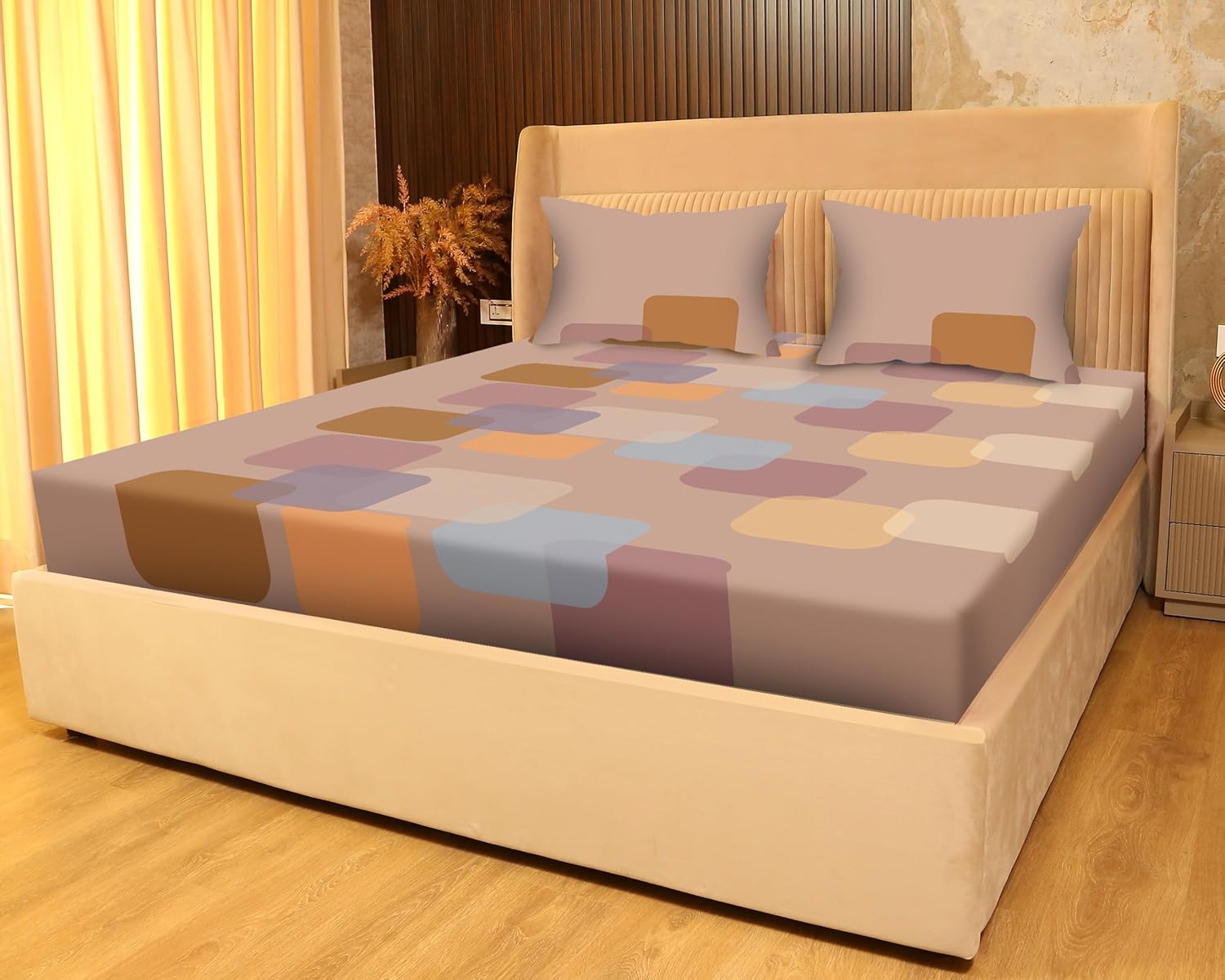 SANFORDZ Digital Art Queen Size BEDSHEET1 Queen Size Bed sheet + 2 Pillow Covers140 GSM Glace Cotton Fabric Sateen Cotton