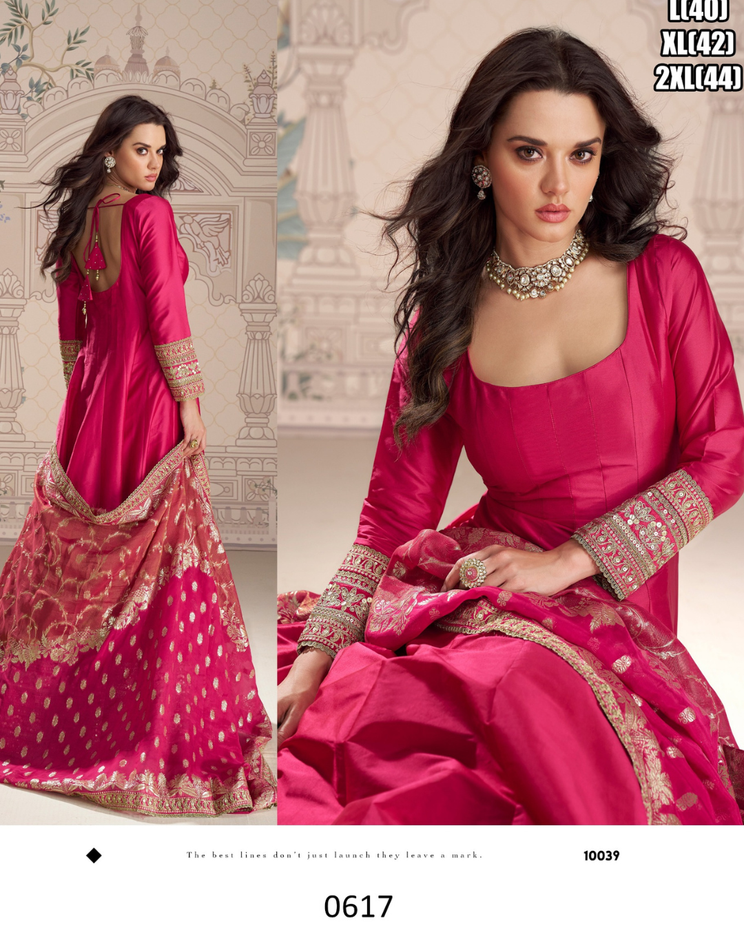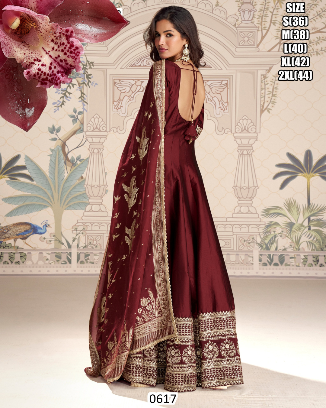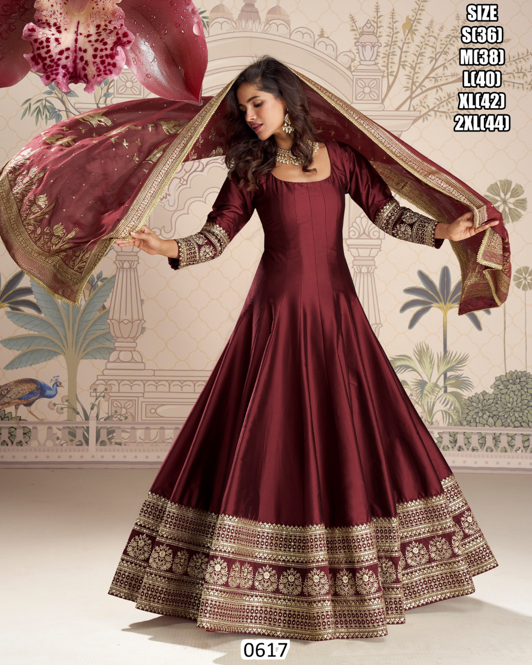 Premium ‘silk suit’ real silk / viscose jacquard silk gown featuring a trendy festive look with front and back embroidery, paired with a matching viscose jacquard dupatta. An elegant choice for weddings and festive occasions.